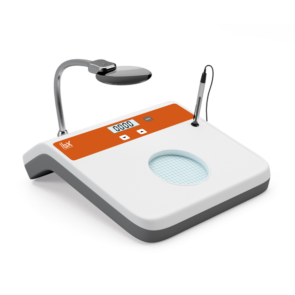 Compteur de colonies compact et léger, conçu pour le comptage précis de colonies bactériennes sur boîtes de Petri jusqu’à 118 mm de diamètre. Équipé d’un affichage numérique LED 4 chiffres (0–9999), d’un stylet de comptage haute sensibilité et d’une fonction de correction permettant d’ajouter ou de soustraire des comptages en cas d’erreur. Éclairage latéral réglable par lampe fluorescente circulaire basse consommation, améliorant le contraste et la visibilité des colonies sur la boîte. Intègre une loupe de 90 mm avec grossissement 3X et 6X, ainsi qu’une plaque de comptage avec grille. Disponible en deux versions : modèle CC10 alimenté par piles AAA, et modèle CC10E équipé d’une batterie lithium rechargeable, idéals pour une utilisation mobile ou sur paillasse. Dimensions : 250 x 210 x 60 mm. Poids : 1 kg. Consommation : 7 W. Alimentation : 100-240 V / 50-60 Hz. Garantie 2 ans